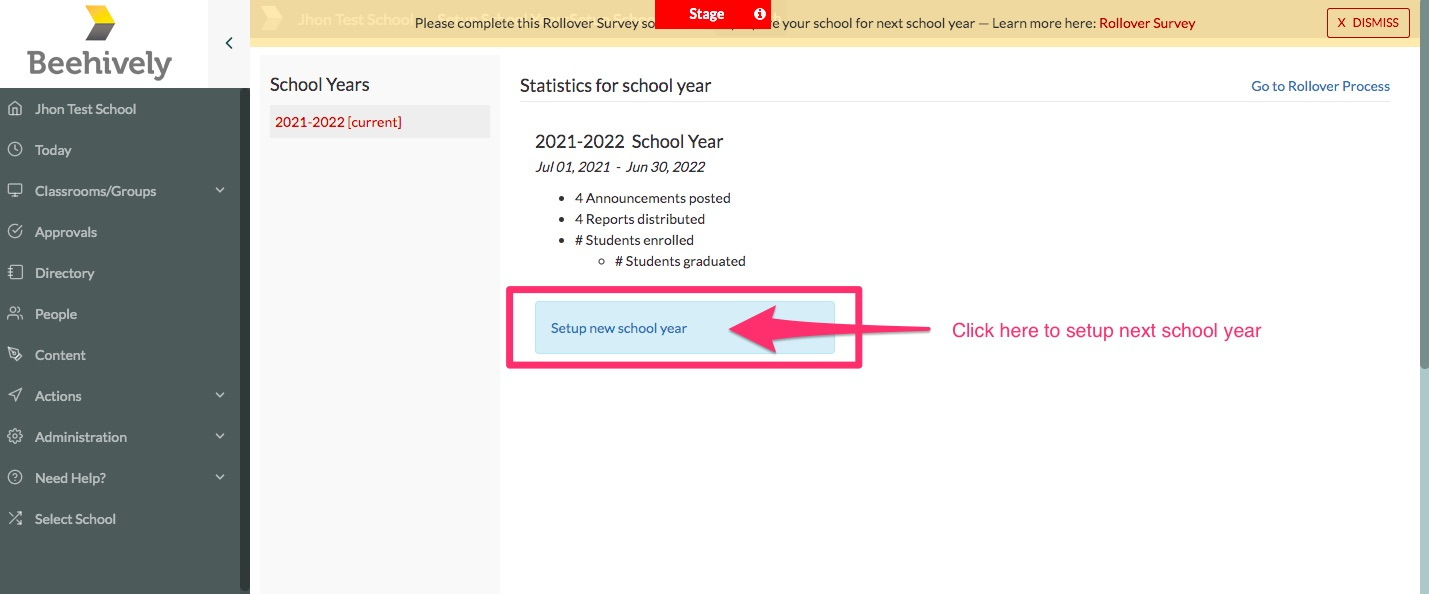 Once the new school year is made live you have completed the Rollover process! Your school should be all set for the upcoming year, and you may continue to use the Beehively portal uninterrupted.