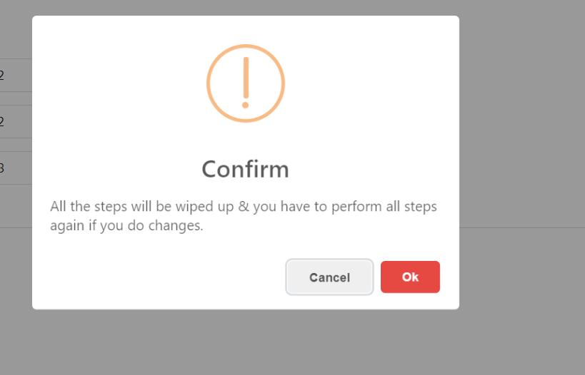 1. At any point of the steps, if you go back and make changes to any of the steps you have previously confirmed, you will need to perform all the steps once again, so kindly ensure that you perform all steps once again. This kind of a warning is display if you gone back to any of the steps and made a change.